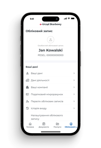 Після входу через login.gov.pl (довірений профіль, е-посвідчення особи або е-банкінг) або застосунок mObywatel, Ви отримаєте повний доступ до своїх даних та всіх послуг сервісу «e-Податкова служба», доступних в обліковому записі фізичної особи.